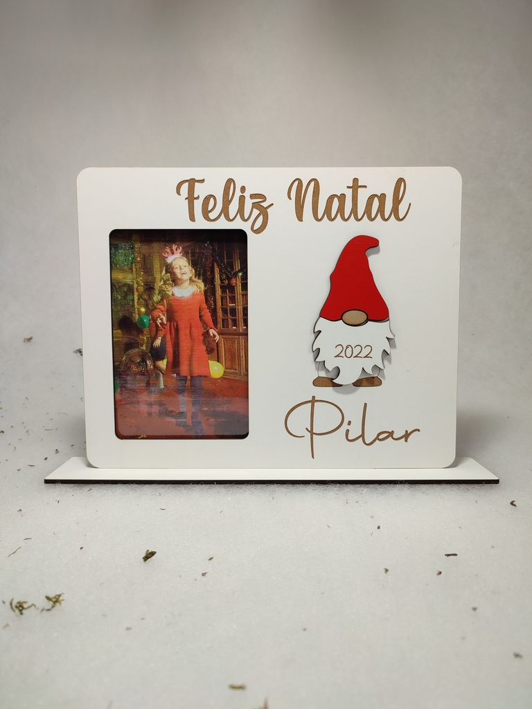 Moldura p/Foto 10*15cm (Não incluída), modelo vertical, com decoração Gnomo de Natal e Nome Personalizado.